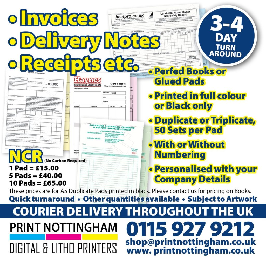 Print Nottingham custom design and print NCR (No Carbon Required) Books or Pads, we create: